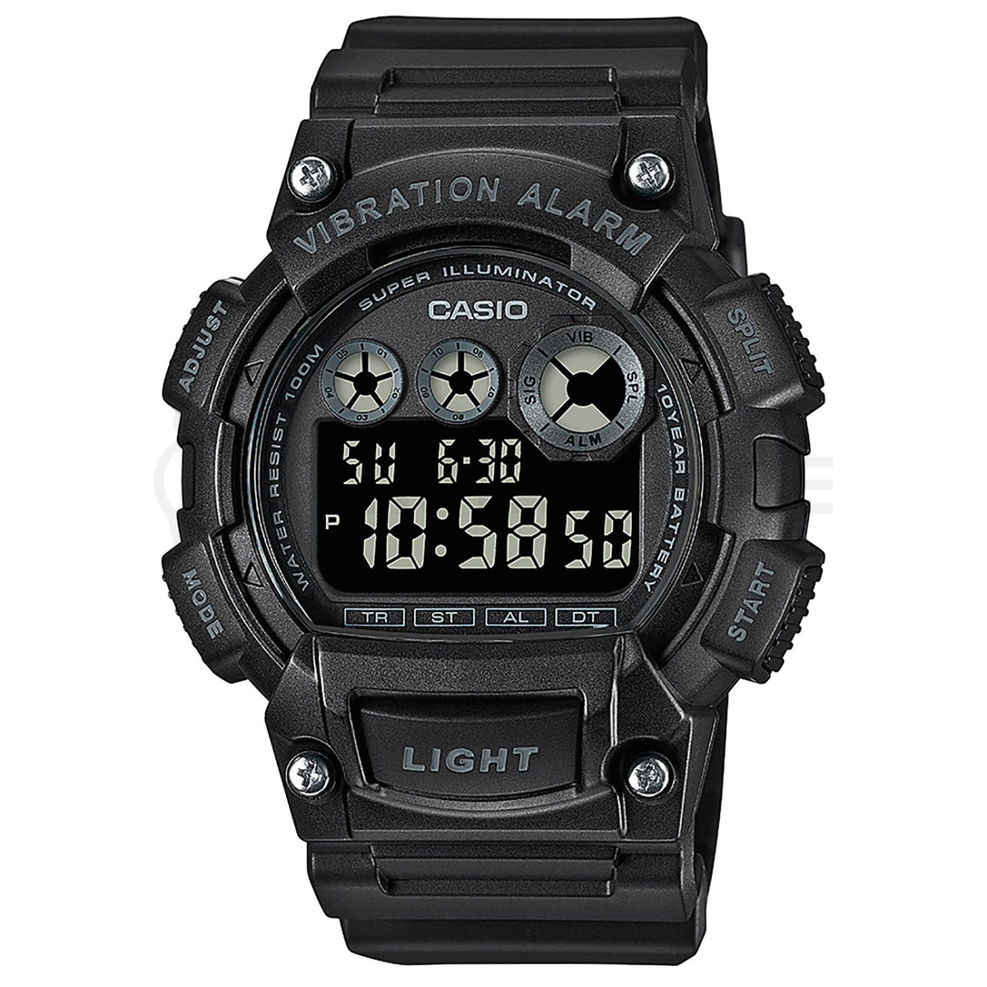 - illuminazione, allarme, cronografo, cronometro con conto alla rovescia, doppio tempo