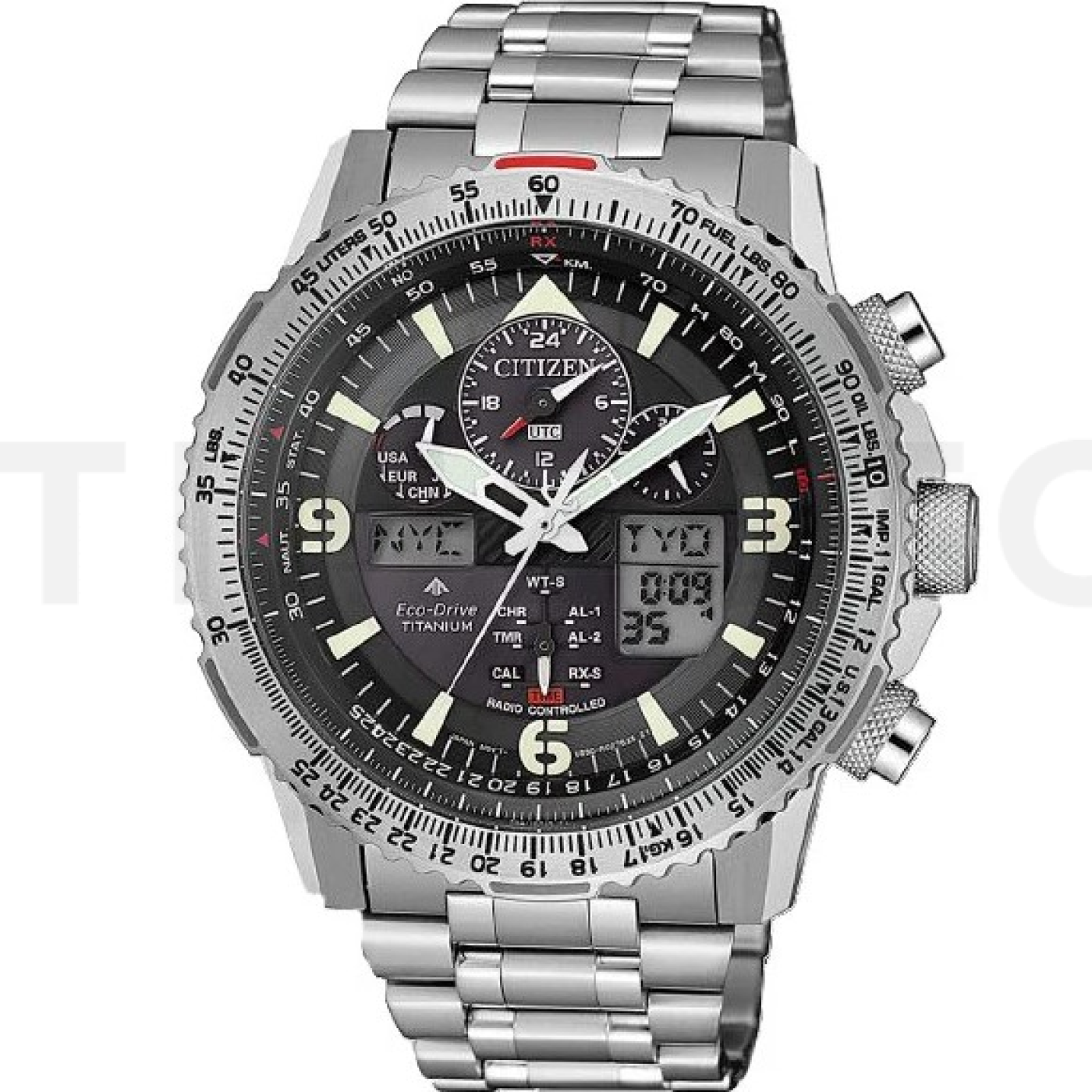 - ora mondiale, illuminazione, radiocomandato, allarme, cronografo, indicatore di carica della batteria, calendario perpetuo