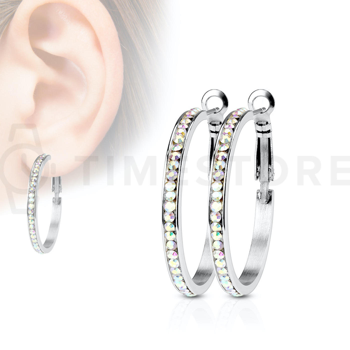 Orecchini a cerchio in acciaio chirurgico con zirconi